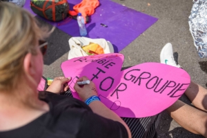 Auf dem Messegelände der Luxexpo sind gegen 12 Uhr am Montag außerdem viele Menschen aus Deutschland, aber auch aus Frankreich oder Italien dabei. Rund 60 warten in der Sonne sitzend – ausgestattet mit Basecaps, Campingstühlen und Sonnenschirmen – auf ihren „Robbie“. Anhängerschaft aus Luxemburg ist zu dem Zeitpunkt nicht vor Ort. Die Niederländerin Murïel Mulder, die den Überblick über das Geschehen behält und gut vernetzt ist, erklärt: „Ich kenne auch einige Fans aus Luxemburg. Aber die sagen, dass so was hier weniger üblich ist.“