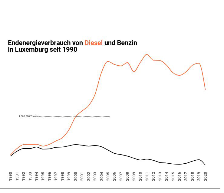 Das habe sich vor allem in den vergangenen zehn bis 15 Jahren so entwickelt. „Lkws, Transporter, alle fahren mit Diesel“, sagt Hoffmann. Auch bei den Pkws habe es sich in Europa in diese Richtung entwickelt, nachdem der Turbodiesel eingeführt wurde. „Und dieses Produkt hatte auch eine sehr gute Energieverwertung“, sagt Hoffmann. „Der Verbrauch bei einem optimierten Dieselfahrzeug ist wesentlich geringer als bei einem Benziner, weil mehr Energie im Diesel ist.“ Auch in Luxemburg hatte sich der Diesel durchgesetzt. „Wir waren einmal bei einem Anteil von 80 bis 85 Prozent bei den Neuzulassungen“, sagt Hoffmann. „Jetzt sind es 30 Prozent, es kommt natürlich auch die Elektromobilität mit ins Spiel, sodass wir in Zukunft ein völlig anderes Bild haben werden.“