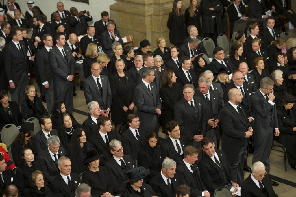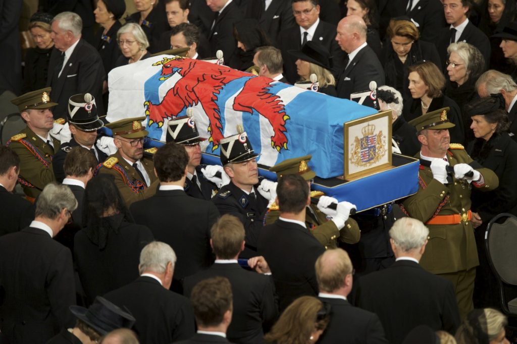 Hinter dem Sarg erscheinen Großherzog Henri und Großherzogin Maria Teresa. Henri, der seinen Vater an diesem Tag verabschiedet, blickt ernst. Sein Schritt scheint etwas zittrig, seine Stirn ist in Falten gelegt. Seine Frau hält seine Hand. Hinter ihnen Erbgroßherzog Guillaume, Erbgroßherzogin Stéphanie und die weiteren Angehörigen der großherzoglichen Familie.