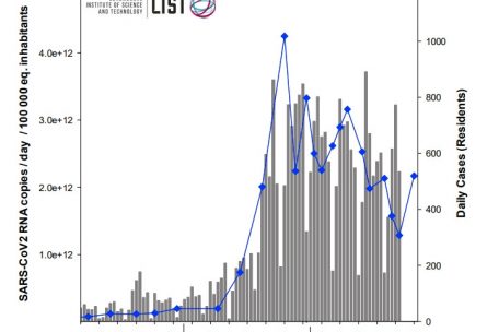 Laut dem neuesten Bericht der LIST-Forscher, die das Luxemburger Abwasser nach Spuren der Coronavirus-RNA untersuchen, ist die Virenbelastung immer noch hoch. „Der Zufluss an Sars-Cov-2-RNA in den Kläranlagen bleibt hoch und ist vergleichbar mit den Werten, die während der vergangenen Woche beobachtet wurden“, schreiben die Wissenschaftler in ihrem Bericht, der am Mittwochmorgen veröffentlicht wurde. Die Proben, die die Forscher Anfang dieser Woche entnommen haben, weisen dagegen wieder etwas höhere Werte als in der Vorwoche auf.