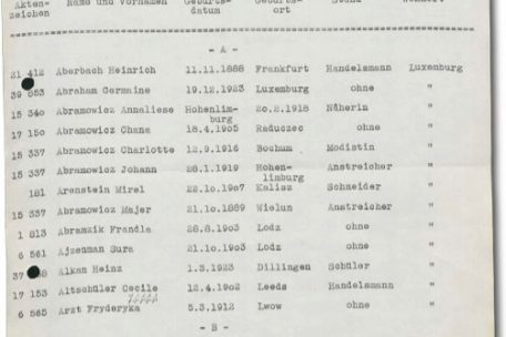 In der entsprechenden Archivakte des Außenministeriums ist nur die oben zitierte Korrespondenz zu finden, aber nicht die Liste selbst. Diese befindet sich in einer Archivakte des CdZ und trägt den Titel: „Verzeichnis der hierzulande angemeldeten Juden polnischer Abstammung in alphabetischer Reihenfolge und nach Ortschaften geordnet“.6 Die Liste wurde integral vom Historiker Denis Scuto am 19. November 2015 im Tageblatt veröffentlicht.