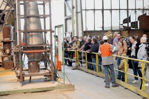 Das „FerroForum“ im Zentralatelier der ehemaligen „Metzeschmelz“ ist am Freitag (29.4.) feierlich eröffnet worden. Am Samstagnachmittag konnte sich dann das Publikum erstmals ein Bild von den Arbeiten machen. Höhepunkt war das Füllen und Anheizen des Kuppelofens in Erwartung der ersten „Coulée“ von Gusseisen.