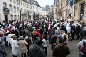Wie bei den bisherigen „Marches blanches“ startete der Protestzug vor der Philharmonie in Kirchberg. Die Teilnehmer liefen mit ihren Schildchen bis vor das Parlament – in dem allerdings heute niemand anwesend war.