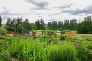 Begonnen hat alles 2017 mit der Einweihung der Schrebergärten. Heute gibt es einen Grillplatz, Hochbeete, ein Gewächshaus, Plätze, um im Sommer zu verschnaufen und Hütten, um Gartenmaterial unterzubringen. Wer Wasser will, muss pumpen. Es handelt sich um Regenwasser, das in großen Reservoirs gesammelt wird.
