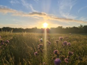 Das junge Naturschutzgebiet sticht durch eine bunte Pflanzenvielfalt hervor. Die wilde Möhre, Skabiose, Vogelmiere, Holunder oder etwa die Aster verwandeln die Landschaft in ein farbenprächtiges Meer und locken Bienen, Schwebfliegen und eine Vielzahl an Insekten an. Die wilden Rosengewächse ihrerseits bilden zusammen mit Schlehdorn, Weißdorn und Kirschblüten eine weiße Kulisse für den Frühlingswald.