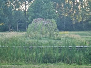 Das ausgehobene Erdreich wurde verwendet, um eine Anhöhe zu errichten, auf der sich eine Beobachtungshütte befindet.