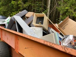 Die Polizei hat am Freitagmorgen erfahren, dass jemand auf einem Waldweg des CR303, der Strecke Roodt/Ell in Richtung Obercolpach Müll illegal abgelagert hat. Eine Patrouille musste vor Ort feststellen, dass auf einer Länge von ungefähr 25 Metern Möbel, Geräte und Haushaltsmüll deponiert wurden – darunter ein Kühlschrank, ein Sofa, Gartenstühle und Haushaltsware.