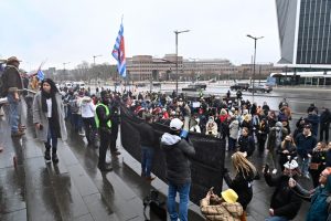 Dabei forderten die Protestler lautstark „Liberté, Liberté!“, „Wir wollen keinen sanitären Pass“ und „Finger weg von unseren Kindern!“. Die Brücke musste eine Zeit lang gesperrt werden. Demonstranten versuchten auch, die Tram zeitweise zu blockieren. Teilnehmer der „Saturday for Liberty“ haben gleichzeitig die Einfahrt zur Brücke zugesetzt.