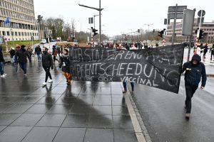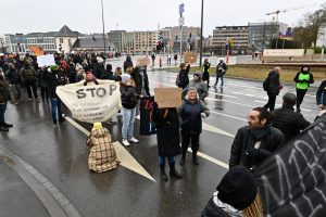 Während sich die rund 50 Teilnehmer der „Saturday for Liberty“ vorrangig am Glacis aufhielten, zogen rund 200 Demonstranten über die rote Brücke zur Philharmonie. Die Polizei hatte rund 150 Teilnehmer gezählt.