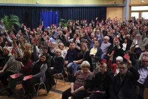 Über den Wunsch nach programmatischer Diskussion, aber auch nach Erneuerung der Strukturen und nach einem frischen Wind bei den Personalien konnte auch das schließlich doch recht überzeugende Resultat von 379 Stimmen Zustimmung (13 waren dagegen, 6 enthielten sich) für das Koalitionsabkommen und somit für die Fortführung der Dreierkoalition nicht hinwegtäuschen. Dies mag wohl auch der Grund gewesen sein, dass der Parteipräsident einen Kongress ankündigte, der Ende Januar 2019 über die Bühne gehen wird und bei dem u.a. die Neuwahl aller Parteigremien auf der Tagesordnung stehen wird.