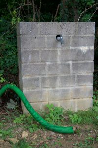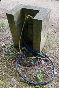 Problematisch ist auch, dass sich in der Anlage „Bouwenacker“ zahlreiche Gartenschläuche befinden, die zum Hauptweg hin irgendwo unterm Boden verschwinden. Der eine oder andere Schlauch taucht nahe den Wasserverteilungsanlagen wieder auf, andere nicht. Wo führen sie hin? Zapfen sie etwa die Hauptleitung an? Oder wenn sie nirgendwo hinführen, zu nichts mehr nützen, warum werden sie nicht entfernt? Oder was hat Plastik im Boden eines Quellgebietes zu suchen?