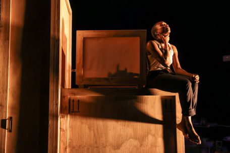 L’idée de départ de la pièce – donner voix à une sculpture délaissée dans un entrepôt, écrire une pièce autour de la seule notion de la métalepse – est on ne peut plus ingénieuse, et l’autrice tout comme la metteure en scène s’en donnent à cœur joie, exploitant cette situation pour le moins particulière, le texte s’évertuant à reproduire cette lente naissance à la parole, à la contextualiser, à effacer les frontières entre fiction et réel, transformant Lunghi en personnage de théâtre là où la scénographie, signée Anouk Schiltz, la mise en scène d’Aude-Laurence Biver et la mise en musique de Claire Parsons jouent sur le dispositif – ce qui paraît d’abord un entrepôt tout ce qu’il y a de plus banal, avec une simple juxtaposition de caissons, se dévoilera, au fur que le monologue progresse, être un véritable terrain de jeu scénique investi par Rosa, qui les escalade, ces caissons, dévoilant leur contenu alors que sont projetées, sur ces mêmes boîtes, les différentes insultes qu’on lançait à son endroit.