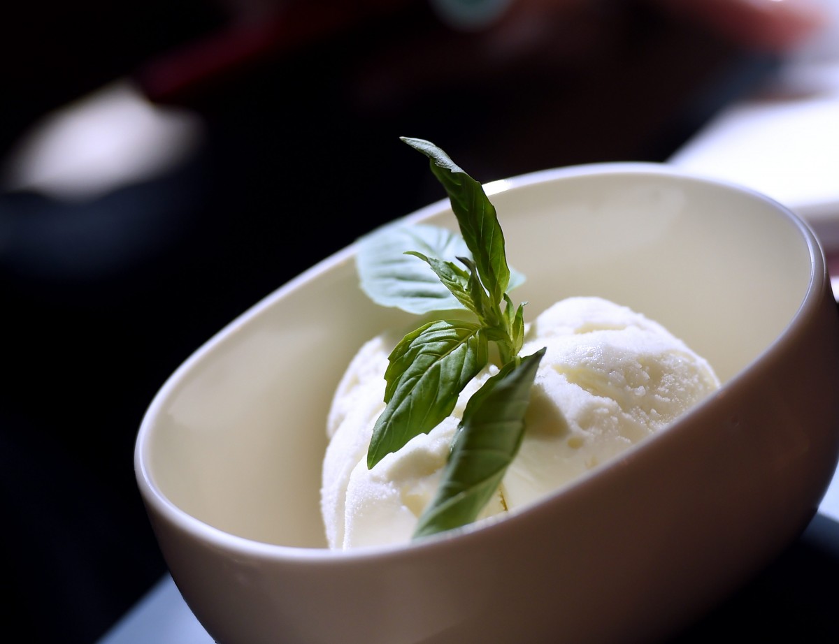 Diese gelungene optische, aber nicht geschmackliche Täuschung steigert Silenchuk mit der „Hauptspeise“. Eine Kugel Mozzarella-Eis, in deren Inneren sich ein Herz aus Tomaten- und Basilikumeis verbirgt. Geschmacklich ein Traum. Sonst übliche Floskeln wie „sonnengereifte Tomaten“ stimmen hier tatsächlich: Das Milcheis schmeckt wie echter Mozzarella, die Tomaten schmackhaft wie jene aus der Kindheit aus Omas Garten, das Basilikum setzt das i-Tüpfelchen auf diese Kreation.