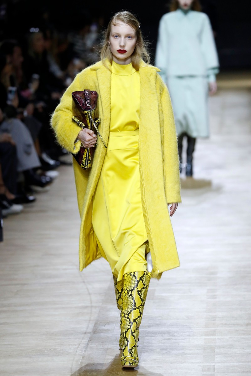 Für den belgischen Designer Dries Van Noten ist die Frau seit jeher feminin und maskulin zugleich. Über einen weit geschnittenen, schwarzen Männeranzug trägt sie eine bunte Federboa, einen bestickten Bleistiftrock mischt sie mit einem lässigen Streifenhemd, karierte Anzüge mit Peep-Toes. Brüche sollen den Look interessant machen.