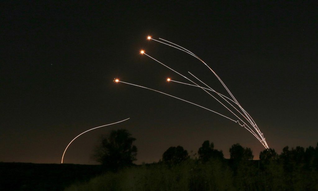 Israel, Sderot: Das israelische Luftverteidigungssystem «Iron Dome» fängt am 4. Mai 2019 Raketen ab, die aus dem Gazastreifen abgefeuert wurden.