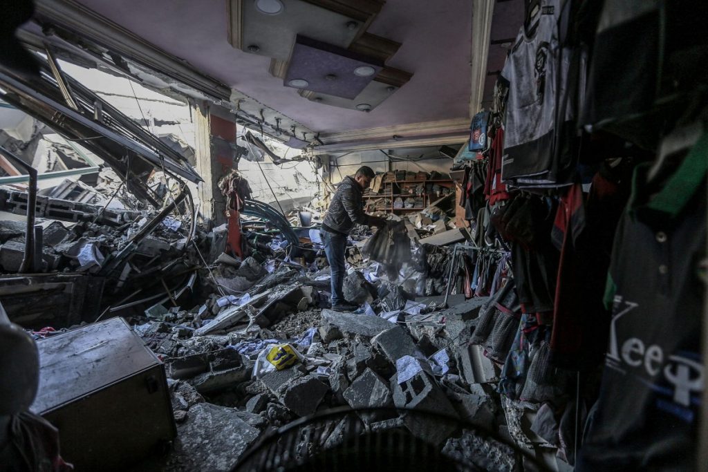 Gaza-Stadt: Ein Mann inspiziert den Schaden in einem Geschäft, das bei israelischen Luftangriffen getroffen worden ist. Foto: Mohammed Talatene/dpa