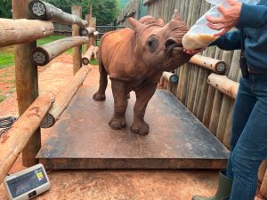Ranger brachten das kleine Breitmaulnashorn zur nahe gelegenen Tierpflegeeinrichtung „Care for Wild“, die sich auf die Rettung von Nashörnern spezialisiert hat, aber auch andere verwaiste oder verletzte Tiere aufnimmt.