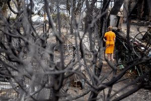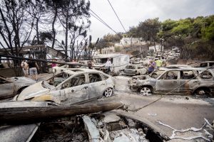Luftaufnahmen der betroffenen Region zeigen das Ausmaß des Infernos – und die Ausweglosigkeit für die Opfer. Starker Wind hatte die Flammen in der Nacht mit rasender Geschwindigkeit vor sich her getrieben. «Der Wind brachte das Feuer, wohin er wollte», sagte eine Augenzeugin dem griechischen Fernsehsender Skai. Viele hätten es schlicht und einfach nicht geschafft, zum rettenden Meer zu gelangen, oder seien von den Flammen umzingelt worden. Auch die Feuerwehr habe keine Chance gehabt. Zu dem Zeitpunkt herrschten in der seit Wochen trockenen und heißen Region Windstärken von bis zu 90 Stundenkilometern.