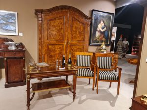 Über die Entwicklung des Umsatzes im Antiquitäten- und Kunsthandel nach der Pandemie und mitten in einer wirtschaftlichen Krise gehen die Meinungen weit auseinander. Verschiedene Antiquitätenhändler konnten bereits am ersten Tag gute Geschäfte verzeichnen. Bei anderen Händlern wiederum hielt sich der Umsatz in Grenzen. Im Allgemeinen ziehe aber der Handel mit erlesenen Stücken wieder gut an, da endlich wieder Messen stattfinden dürfen, meint einer der Aussteller aus Deutschland. Die Verbote von Messen hätten das Kulturdenken zerstört.