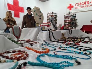 Auf 25 Ständen boten die Ehrenamtlichen eine breite Produktpalette an Weihnachtsgeschenken an. Sehr begehrt war die Secondhand-Mode, und so mancher ergatterte ein Schnäppchen am Trödelmarkt. Natürlich durfte auch das gastronomische Angebot nicht fehlen. Wie man am späten Samstagnachmittag von einigen Freiwilligen hören konnte, seien Gourmet-Spezialitäten wie ein „toast au saumon“ fast ausverkauft.