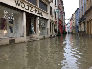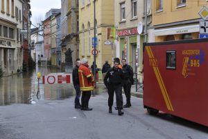 Ein Hochwasser an der Mosel ist immer so etwas wie ein Jahrhundertereignis. Das gilt umso mehr für die, die nicht im Tal leben. Die «Miseler» gehen eher locker damit um. Sie kennen ihren Fluss, die Mosel, sie wissen, dass er unberechenbar ist und leben damit. Jeder auf seine Weise. Von Putzen konnte am Montagmorgen noch keine Rede sein. Zwar fiel der Pegel, aber eben nur langsam. Da müssen zuerst die Keller ausgepumpt werden, bevor die Straßen und Plätze gereinigt werden können. Remichs Bürgermeister Jacques Sitz (DP) geht davon aus, dass am Dienstag mit der großen Putzaktion begonnen werden kann. «Wir haben dann alle Kräfte, die verfügbar sind, im Einsatz», sagt er. Das werden zusammen mit Feuerwehr und «Protection civile» ungefähr 30 Leute sein.