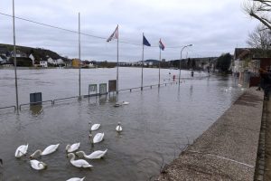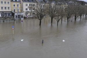 Sandra Kuhlmann geht zielstrebig unter der Absperrung Richtung Europamuseum durch. Die Straße steht komplett unter Wasser, die Verbindung in die andere Richtung nach Remerschen ist lahmgelegt. Psssst, sie legt den Finger an die Lippen. Nur wenn Ruhe herrscht und keine Gefahr droht, kommen ihre Schützlinge aus dem Wasser und laufen hinter ihrer Mutter den Weg hoch. Sie wissen, es gibt was zu futtern. Die acht kleinen und erst zwei Wochen alten Nilgänse, die mit ihren Eltern Nelly und Nils an der Mosel leben, haben harte Tage hinter sich. «Sie müssen jetzt dringend aus dem Wasser und fressen», sagt Kuhlmann. Die Gründerin von «Perros Andalucia», einer Tierschutzorganisation in Schengen, ist jeden Hochwassertag im Einsatz. Hinter den Tieren hat sich die Mosel in einen reißenden Strom verwandelt. Sie zählt die Kleinen. «Acht, das ist gut», sagt sie, «alle noch beieinander.» Das neunte «Baby» ist in der Tierauffangstation in Düdelingen. Es hatte sich verletzt und hätte das Hochwasser sicher nicht überlebt. Das gilt wahrscheinlich auch für den Rest der Familie, gäbe es da nicht die Tierschützer.
