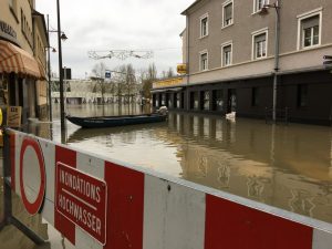 Die Straße place du Marché ist komplett unter Wasser – genauso wie die Esplanade, auf der sich im Sommer das Leben abspielt. Neben der Boulangerie-Pâtisserie steht das Wasser, fahren kann man hier nicht. Gehen geht nur mit knielangen Gummistiefeln. Damit sind offensichtlich nur wenige Remicher trotz Hochwasser und Leben am Fluss ausgestattet. Das zumindest stellt Guy Stephany, «chef d’équipe» des «Asatzzenter» Bous-Remich-Stadtbredimus, das am Montag Dienst tat. Der Gemeindemitarbeiter ist auch der «Capitaine» des Bootes. Von seinem Vater hat er gelernt, wie man den Nachen steuert, der die vom Hochwasser eingeschlossenen Remicher Richtung trockenere Plätze fährt, damit sie ihren Weg Richtung Arbeit fortsetzen können. Er war es auch, der irgendwann einen kleinen Motor am «Wassertaxi» angebracht hat. Jetzt ist er beim 112 auf «Stand-by» geschaltet. Von dort kommen die Infos, wer, wann, von wo abgeholt werden muss. «Arzttermine, Einkäufe, Kinder, die in die Schule müssen …», kommentiert er die Palette der Dienstleistungen. Der Gemeindemitarbeiter ist seit Sonntag 8.00 Uhr im Einsatz. Dazwischen liegt eine Mütze voll Schlaf, am Montagmorgen ging es gleich um 5.45 Uhr weiter. Das Team ist seit 27 Stunden das gleiche. «Wir sind die einzigen, die mit dem Boot umgehen können», sagt er. Stephany hat das noch von seinem Vater gelernt, der das Boot über 40 Jahre lang bedient hat – viele Jahre davon noch mit dem Ruder. «Es gibt niemanden mehr, der das kann», sagt er in seiner Eigenschaft als Chef vom Boot, «das ist gar nicht so einfach.» Viele meinten, das sei ein Spiel. «Ist es aber nicht», sagt Stephany. Ob der Fluss steigt oder fällt, er hat immer andere Strömungen. Die muss man kennen.