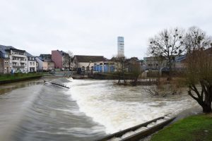 Gemeindearbeiter Carlo Morettoni ist die Ruhe selbst. Er ist den ersten Tag aus dem Jahresendurlaub zurück und pflückt den Dreck auf der rue Enz auf. Das Hochwasser hat ihn kalt erwischt – zumal er in Clerf lebt. «Ich habe noch nicht so viel davon gesehen», sagt er, «ich war auch noch nicht bis ganz unten.» Ändern tut sich sowieso nicht so viel für ihn. Müll gibt es immer und jetzt putzt er eben an den höher gelegenen Orten und Straßen der Moselstadt. «Normalerweise gehört die Esplanade zu meinem Gebiet», sagt er, «jetzt arbeite ich eben am ‚Bierg‘, wie ich das nenne.» Am Ufer käme er zu der Zeit nicht weit.