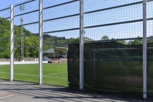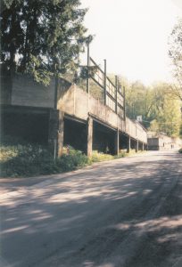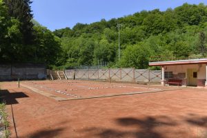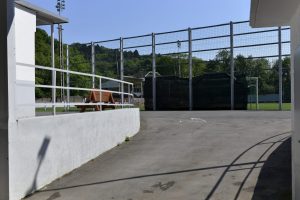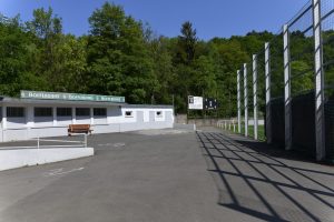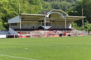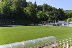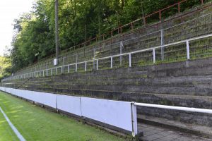 Gegenüber wurde eine große Stehtribüne in die Felswand gehauen. Mittlerweile erobert sich die Natur diese Tribüne wieder zurück. Unkraut wächst dort, wo einst die Fans den Spielern einheizten. «Die Stehtribüne wurde 1921 von Freiwilligen gebaut. Der Platz war nicht eben, sondern es mussten drei Hügel und insgesamt 4.200 m3 an Bauschutt und Eisenerz abgetragen werden. Die Arbeiten dauerten rund neun Monate. Dieser soziale Aspekt des Stadions darf nicht vergessen werden», so Muller weiter.