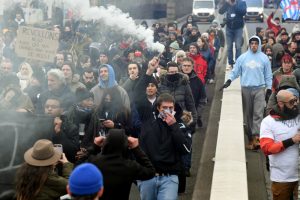 Friedlich heißt für mich, dass keine Festnahme stattfindet. Es sollte eigentlich erst gar keine Polizei anwesend sein. Ich finde es nicht friedlich, wenn die Tramstrecke und Straßen blockiert werden. Vielleicht ist aber auch mein Verständnis vom Wort Friedlich veraltet.