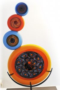 Warum all die Mühen, warum Glas? Die Art, den Werkstoff zu verarbeiten, harmoniert mit ihrem Naturell. Pascale Seil spricht schnell, arbeitet gerne zügig und mag schnelle Ergebnisse. „Ich bin nicht sehr geduldig“, sagt sie. Das wache Grundrauschen, das sie ausstrahlt, ist auch in einer ruhigen Situation im Sitzen zu spüren. Keramik zu verarbeiten, ist ein Prozess mit vielen Zwischenschritten. Und selbst der letzte, das Schleifen und Polieren, kann noch alles zunichte machen. „Glas ist mir einfach näher“, sagt die Künstlerin.
