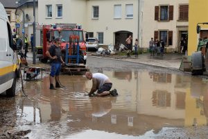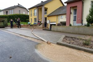 Neben mehreren überschwemmten Kellern stand auch eine Tiefgarage unter Wasser und musste leergepumpt werden. Da die Einsätze immer noch andauern, riefen die Helfer ihre Kollegen des SIS Manternach zur Unterstützung.