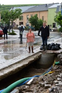 Der direkte Einsatz der Rettungskräfte sei vorüber, jetzt ginge es darum, den Menschen beim Aufräumen zu helfen, so Kersch. Im Müllerthal seien in der Nacht örtlich mehr als 60 Liter Regen pro Quadratmeter gefallen, am Findel wurden 54 Liter gemessen. «Laut Wetterprognosen liegt das Schlimmste hinter uns», meint Kersch.