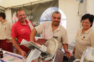 Zur Mittagszeit waren freie Plätze im Festzelt eine Seltenheit, denn in den vergangenen Jahren sind die beiden Kirmesmenüs «Woarm Ham mat gebootschte Gromperen a Saubounen» und «Kiermesham mat Fritten an Zalot» zu echten Kassenschlagern geworden.