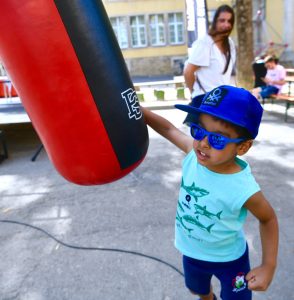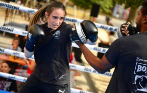 Um neue Boxer für den Club zu gewinnen, haben die Verantwortlichen des Vereins am Dienstag (12.7.) einen Tag der offenen Tür unter freiem Himmel veranstaltet. Bei hochsommerlichen Temperaturen und lauten Hip-Hop-Beats, die von den DJs aus dem Differdinger Jugendtreff gemixt wurden, konnten die Neugierigen einen Einblick in den Trainingsalltag eines Boxers erhaschen. Erst hieß es aufwärmen. Da durfte das Seilspringen natürlich nicht fehlen. Danach zeigten die Boxer ihre besten Schlagkombinationen am Sandsack, bevor sie dann in den Ring stiegen und einige Sparringsrunden absolvierten.