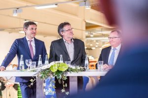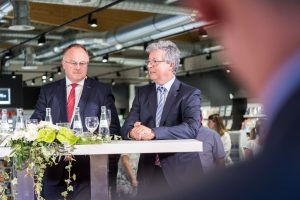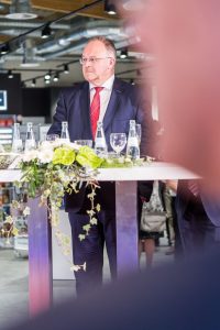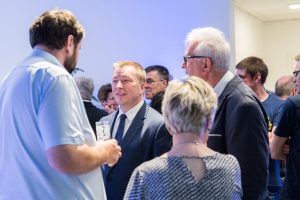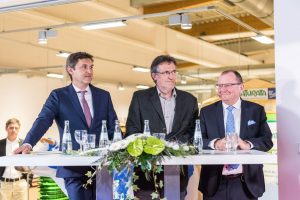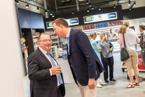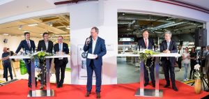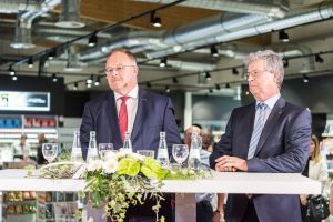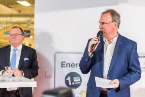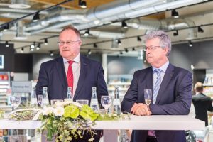 Sie waren da, um gemeinsam mit den Verantwortlichen um Ralf Schaus (1. v.l.), Marc Reiff (3.v.r.), Jerry Majerus (1. v.r.) sowie Änder Schanck (2. v.r.) diesen für den Norden des Landes wichtigen Moment zu feiern. Schließlich werden nicht jeden Tag 20.000 Quadratmeter Verkaufsfläche eröffnet.