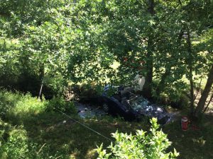 Ein Fahrer verlor in einer Rechtskurve die Kontrolle über sein Fahrzeug und wurde auf der Brücke «Pentchterbréck» links über die dort befindliche Leitplanke geschleudert. Mehrere Meter weiter schlug das Fahrzeug im Bach auf. Der 47-jährige Fahrer erlag seinen schweren Verletzungen.