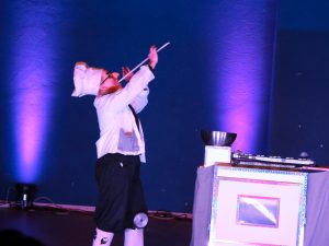 Irina, eine der Ausbilderinnen, schlüpfte in die Rolle einer Köchin. Das quietschende Gummihuhn ließ sich nicht schlachten, stattdessen landete das Messer kurzerhand im Unterarm. Als das Gummihuhn endlich im Ofen landete, dauerte es nicht lange und die Küche war mit Rauch eingenebelt. Das Kochen scheint nicht Irinas Sache zu sein, jedoch das Zaubern. Aus dem Ofen zog sie zwei quicklebendige Gummihühner.
