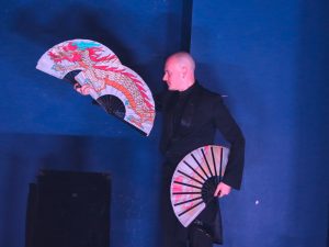 Erst vor kurzem habe ihm der Großvater die Geheimnisse seiner Kartentricks verraten. In der Show am Wochenende verzauberte Maxim das Publikum mit asiatischen Fächern, die er immer wieder verschwinden ließ, aus allen möglichen Verstecken hervorzauberte und sogar vervielfältigte. Auf die asiatischen Fächer habe ein Freund ihn gebracht. Dieser hatte eines Tages einen Traum, dass Maxim mit asiatischen Fächern jongliert. Aus dem Traum wurde Realität. Workshops habe er nie besucht, vielmehr ist Maxim ein Autodidakt. Seine Show mit asiatischen Fächern ist nun bereits fünf Jahre alt, der Künstler tritt in aller Welt mit der Show auf. Während der Darbietung taucht der Magier quasi in eine eigene Welt. Anfangs konzentriere man sich noch sehr auf den Ablauf, nach kurzer Zeit könne man ins Geschehen eintauchen und sich auf die Handgriffe verlassen, wie der Magier erzählt.