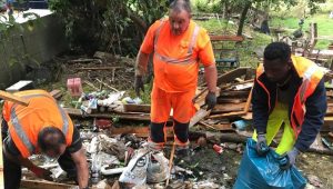 Der Anblick des Gartens ist leider auch nicht erfreulicher – Schrott, überall Schrott. Über den ganzen Garten sind Haufen mit zerstörten Gegenständen verteilt: Pflanzen, eine Unmenge an Holz, darunter kaputte Gartenmöbel, Äste und Zweige. Auf einem anderen Haufen sind Porzellanteller, Töpfe, ein Regal und weiteres Küchengeschirr zu erkennen. „Der Schrott wird hier vor Ort sortiert“, erklärt Herr Wirtz, während ein Arbeiter im Hintergrund eine morsche Tür mit dem Fuß eintritt. Danach werde der Schrott auf den Kleinlastwagen des CIGR geladen, dann nach Berdorf gebracht und dort entsorgt. Frau Poster zeigt Fotos, die sie bereits von dem verwüsteten Einsatzort gemacht hat. So dokumentiert sie die Schäden für ihren Chef und gleichzeitig die Arbeit, die ihr Team leistet. „Es gibt Leute, die haben alles verloren“, kommentiert ihr Kollege Roger Wirtz. Währenddessen drücken die Arbeiter eine mit Holz gefüllte Schubkarre nach der anderen die Garage hoch, hin zu dem Kleinlastwagen.