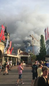 Der Gästeservice des größten europäischen Freizeitparks sprach von «Business as usual» – also von einem ganz normalen Tag. Die großen Achterbahnen seien in Betrieb, es liefen alle Shows. Um die Brandstelle herum lag nach Schilderungen von Augenzeugen noch brenzliger Geruch in der Luft. Sie sprachen aber von einem ungestörten Freizeitvergnügen für die Besucher. An den Attraktionen gab es demnach teils großen Andrang.