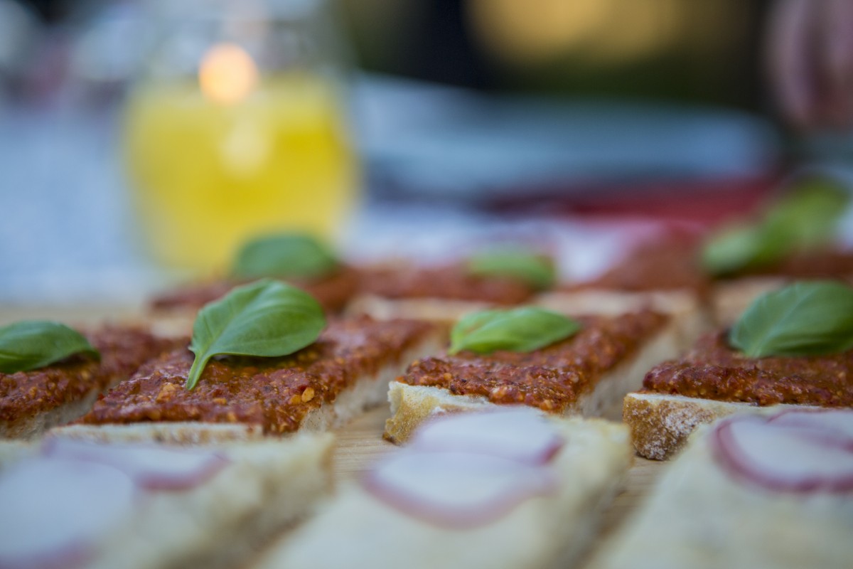 Los geht es mit leichten Häppchen und Chips. Natürliche Zutaten wie die knusprigen und quasi fettfreien Gemüsechips treffen auf kleine Brotstreifen mit Auberginen-Knoblauch-Aufstrich. Wer lieber geröstete Paprika mag, greift zum entsprechenden Aufstrich und zaubert im Nu eine weitere leckere Aperitif-Begleitung.