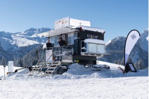 Nachhaltig essen auf der Piste im „The Offcut“. Im Skigebiet Eggli wurde ein Pistenfahrzeug zum Gourmet-Foodtruck umgebaut. Martin Göschel vom Hotel The Alpina Gstaad zaubert im „The Offcut“ mit den Resten des Sternerestaurants nachhaltige Leckerbissen am Pistenrand und geht so gegen Lebensmittelverschwendung vor.