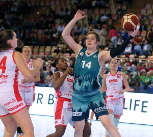 Nach dem Seitenwechsel wirkte Hostert nun aggressiver in seiner Verteidigung, zwang Bartringen hier immer mehr zu Ballverlusten und schaltete schließlich schnell um. So gelangen Logic sechs Punkte in Folge und der Rückstand schmolz im Handumdrehen auf fünf Einheiten (40:35, 23’). Während van Kleunen auf drei Zähler verkürzte (40:37), blieb die Sparta ganze fünf Minuten ohne Korberfolg. Es war schließlich Routinier Bridget Yoerger, die ihrem Team mit einem Dreier wieder Luft verschaffte (43:37, 26’). Doch dies war nur von kurzer Dauer, denn nun lief es bei Hostert plötzlich rund. In der 27. war es Logic (43:43), die ausglich, und nur wenige Sekunden später brachte Dowdell ihr Team erstmals in dieser Partie in Führung (43:45). Es war vor allem Logic, mit der Bartringen nun Probleme hatte und die kaum noch zu stoppen war. Mit einem 22:5 hatten die „Greens“ die Partie im dritten Viertel gedreht und gingen ihrerseits mit einer Sechs-Punkte-Führung in den letzten Durchgang. Es sah so aus, als würde sich das Szenario aus der Meisterschaft wiederholen, denn auch hier drehte Hostert vor zwei Wochen nach der Pause das Spiel und setzte sich am Ende deutlich durch.